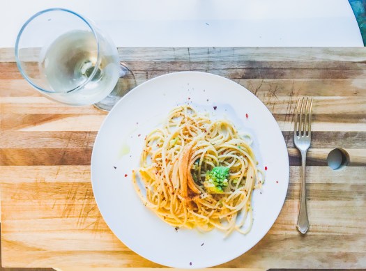 Decoration: Sprinkle with Bottarga powder, add 4-5 extra pine nuts and some freshly chopped parsley to top the pasta before serving.