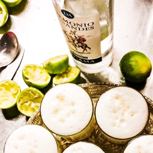 Pour the egg white into a blender together with the sugar syrup and blend for 10 secs. Pour the Pisco, lime juice and the ice and continue blending for further 20 secs.