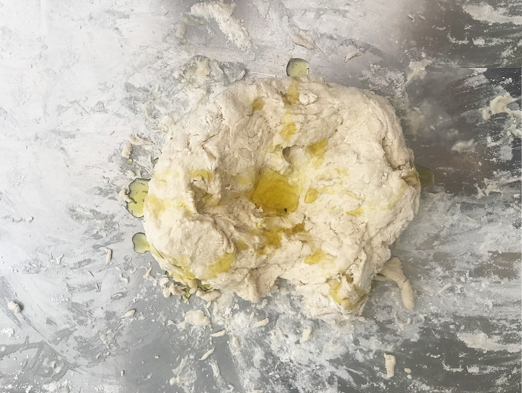 Knead the dough until it comes together into a texturally resilient ball that is versatile enough to form into any shape.