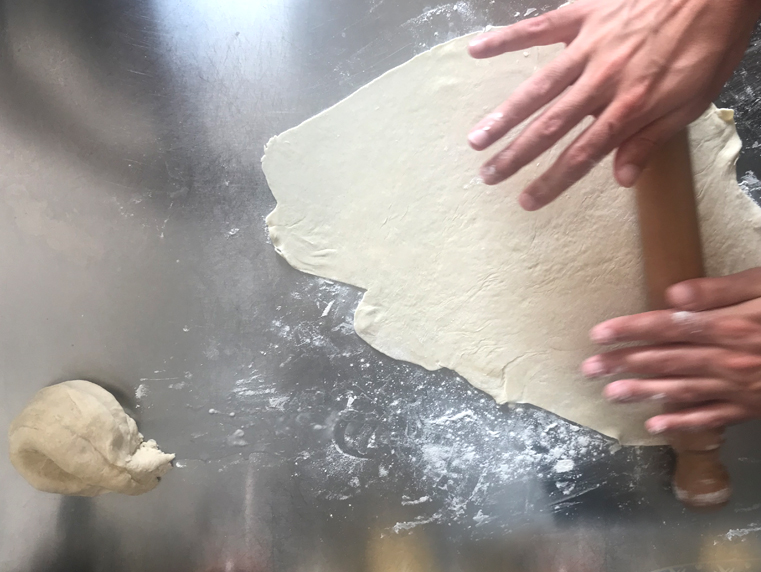 Gluten allows the dough to be stretched and rolled out to be very thin.