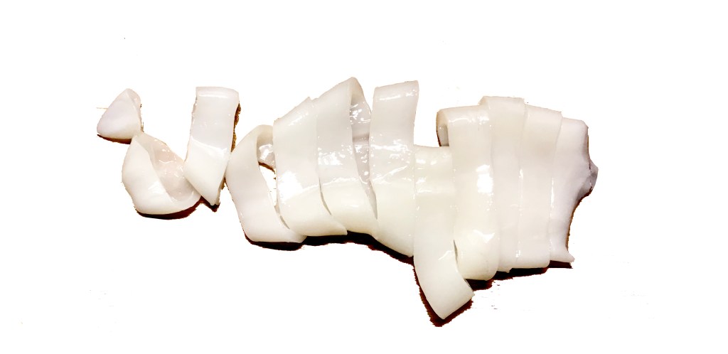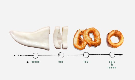 Slice the tubes into rings about 1-1.5cm wide but leave the tentacles whole.