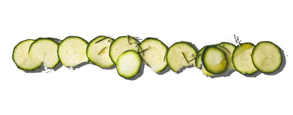 Add finely sliced courgettes. Season with salt, a pinch chilli flakes, coarsely chopped parsley and mint.