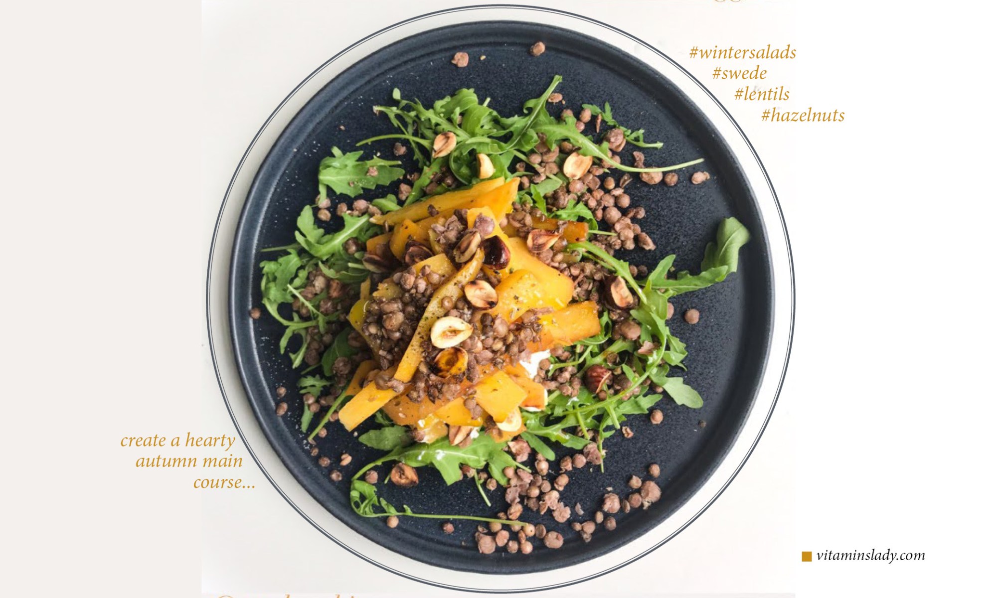 Winter salad – Swede and lentils with hazelnuts and mint